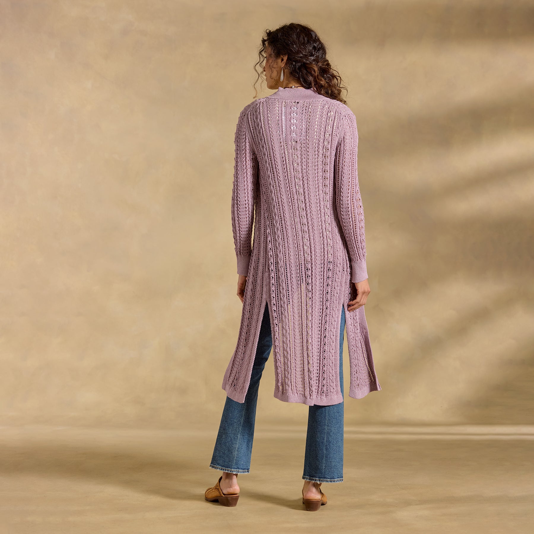 Meet our most subtle statement sweater: the Augusta Duster. With lightweight yarn and an artful open stitch. she’s equally cozy over jeans or your favorite maxi. Poly/cotton/nylon/lurex/linen. Hand wash. Imported. Exclusive. Sizes XS (0–2). S (4–6). M (8–10). L (12–14). XL (16–18). XXL (20–22). Approx. 42.5l.