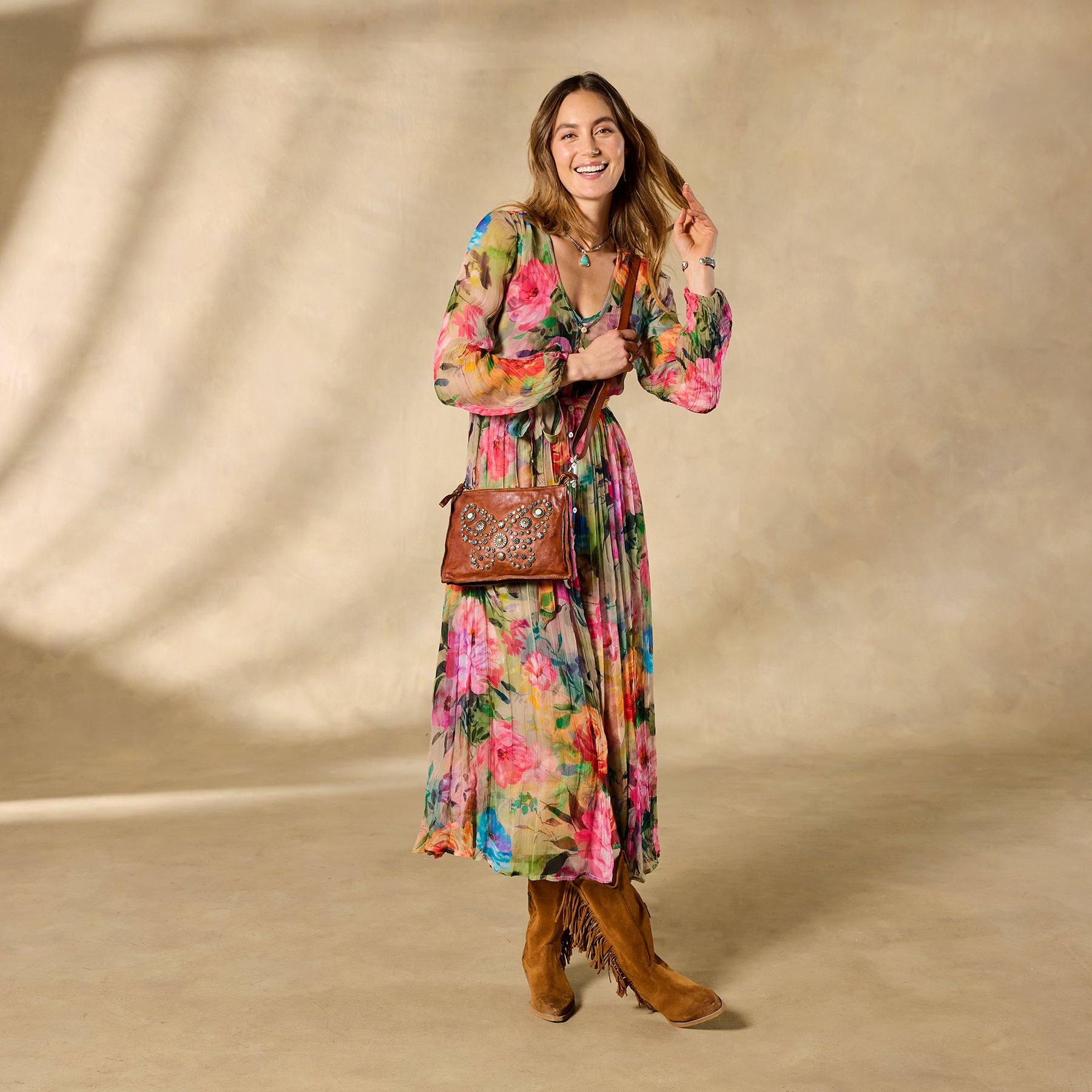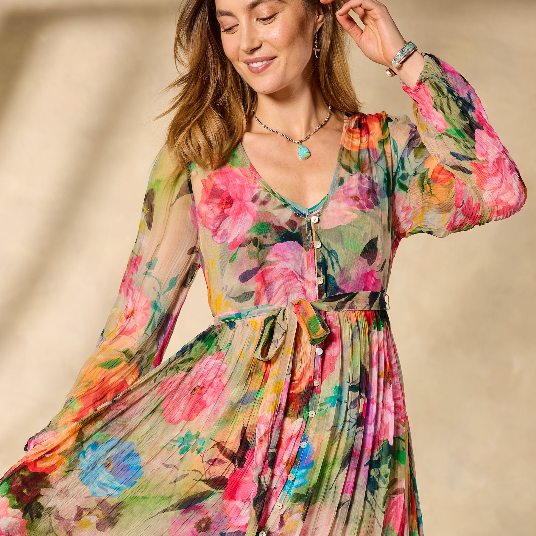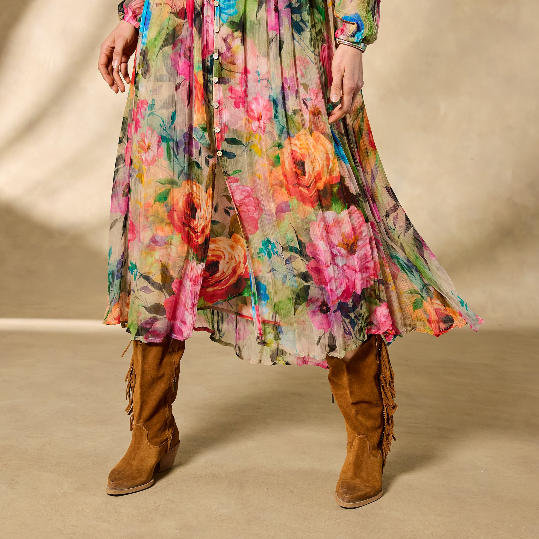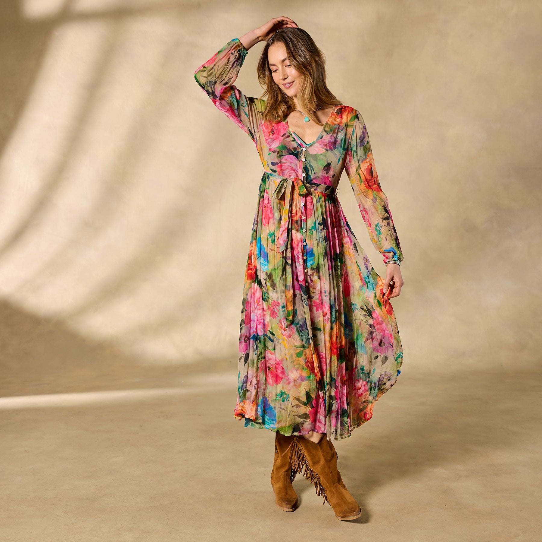 Be a heavenly vision wherever you go in our floaty Halcyon maxi. A vibrant exploded floral pattern further elevates an already stunning jacquard fabric; with shell buttons. elastic cuffs. removable belt and separate printed slip. Viscose. Machine wash. Imported. Exclusive. Sizes XXS (00). XS (0??). S (4??). M (8??0). L (12??4). XL (16??8). Approx. 49l.