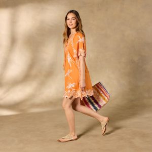 Our cute. casual Imperia Cover-Up is here to take you from cabana to cocktail hour and beyond. All-over embroidery and scalloped details elevate this easy popover; notch neck with beaded tie. Cotton. Machine wash. Imported. Exclusive. Sizes XXS (00). XS (0–2). S (4–6). M (8–10). L (12–14). XL (16–18). Approx. 31.5l.