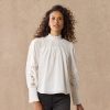 A vibrant ikat print makes a beautiful statement on this airy top with notch neckline. bracelet-length blouson sleeves and straight hem. Shirring at neckline and cuffs. Cotton. Machine wash. Imported. Sizes XS (4). S (6). M (8–10). L (12). XL (14). XXL (16). Approx. 25l.