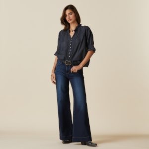 Hand-dyed in small batches. this shirt boasts pintucks. a ruffled collar and delicate buttons. Cotton. Hand wash. Imported. Sizes XS (0-2). S (4-6). M (8-10). L (12-14). XL (16-18). Approx. 22l.