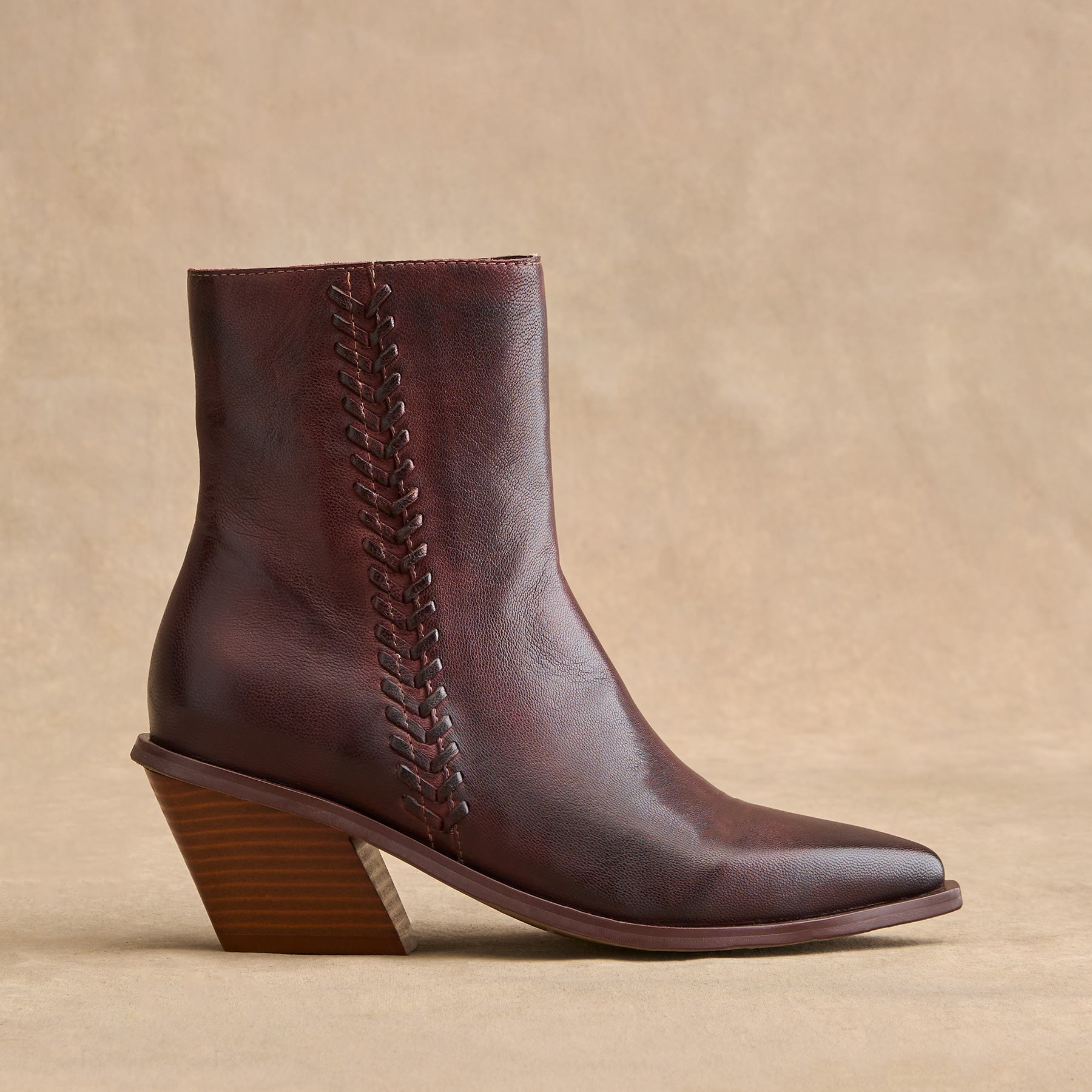 Whipstitch braid detail is the star of these dashing. handcrafted boots. Leather. Imported. Exclusive. Whole sizes 36 (US 5). 37 (US 6). 38 (US 7). 39 (US 8). 40 (US 9). 41 (US 10). 2 heel.